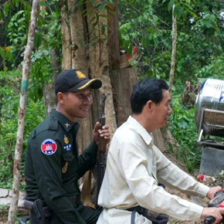 The camp we are staying in is in the grounds of the Forestry Administration’s research station. Getting here from Banlung took five hours by road and boat, topped off with a 19-kilometre cycle ride that gave us our first insight into this particularly beautiful corner of Cambodia. Still in the early phases, the camp and accommodation are simple and basic – we sleep in hammocks, which the tour operator, See Cambodia Differently, says will be upgraded to beds soon.